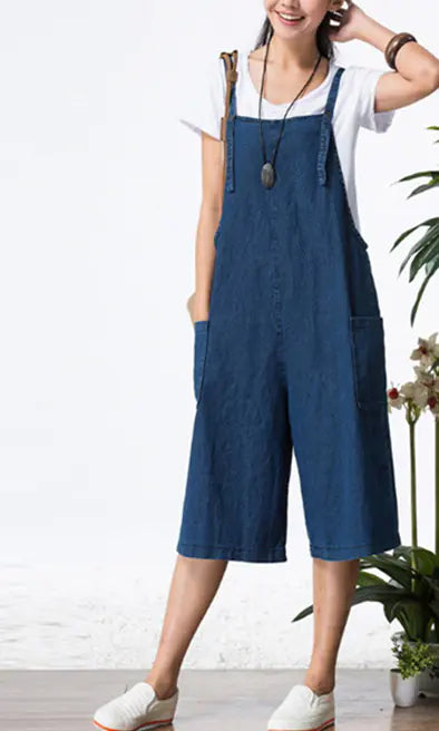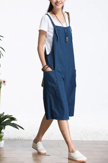 ゆったりとしたカジュアルなデニムオーバーオール